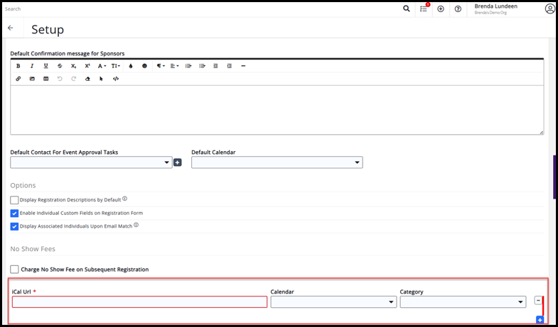 - Populate the iCal URL, Calendar, and Category where these events will display.